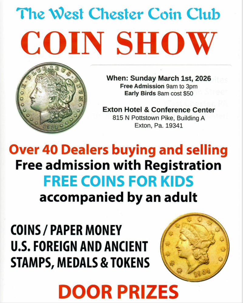 West Chester Coin Club is a dedicated community of coin enthusiasts based in West Chester, Pennsylvania. Founded with a mission to promote the hobby of coin collecting, we offer a range of services and events to educate, inspire, and connect collectors of all levels. Whether you are a seasoned numismatist or just starting out, you are welcome to join us in exploring the world of rare coins.